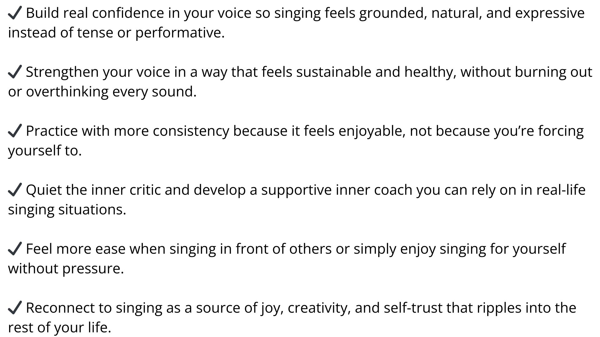 And when you approach singing through the Joyful Singing framework I’m about to share with you, you’ll be able to: