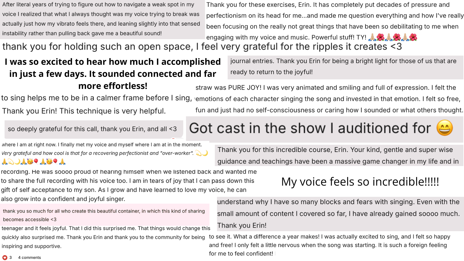 Thank you Erin for creating this "whole-person" course. It's sure to help others re-kindle their joy in singing and expression.